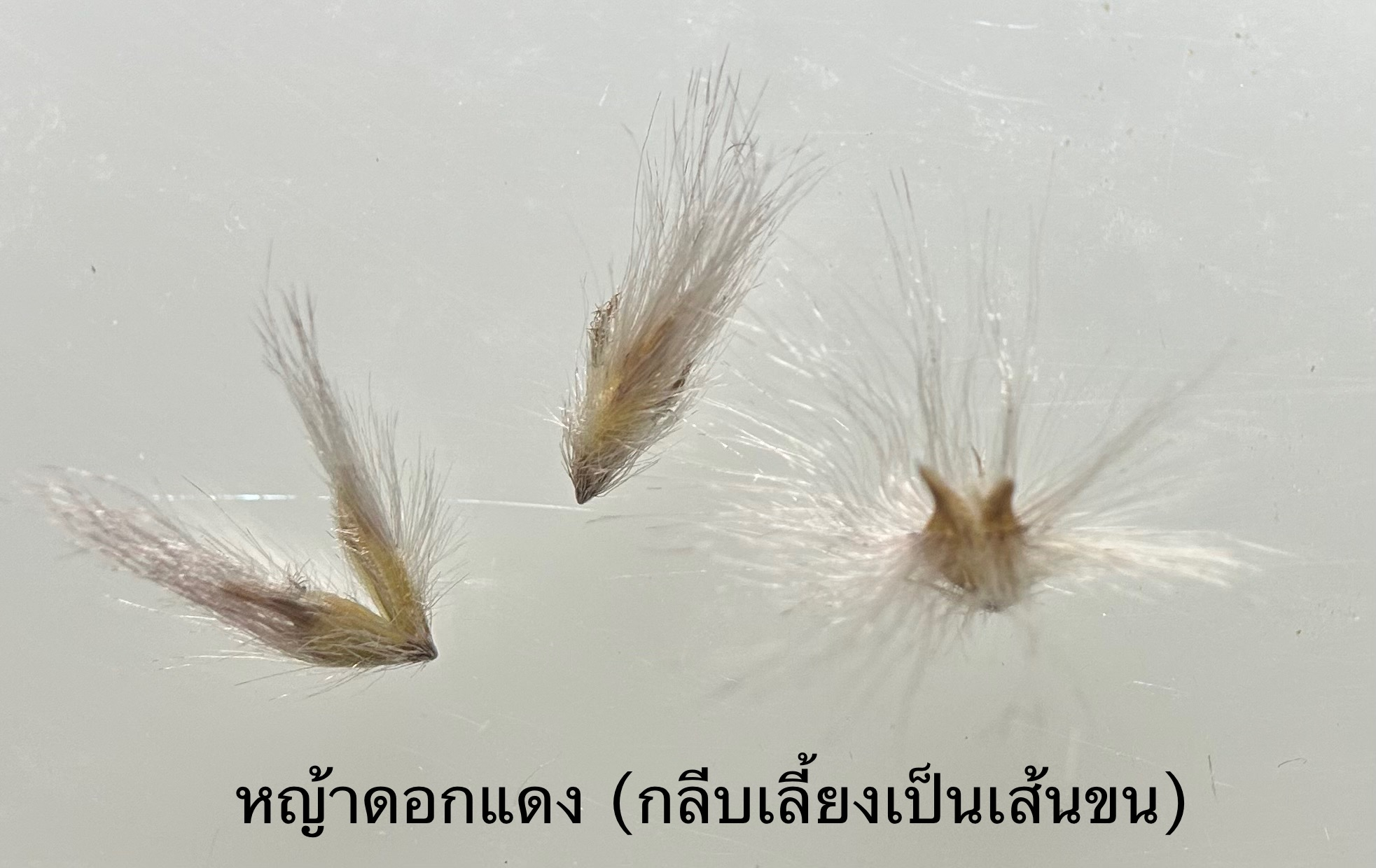 วัชพืชอายุปีเดียว ลำต้นตั้งตรง ความสูงประมาณ 80-150 เซนติเมตร แตกกอได้ ลำต้นมีขนยาวปกคลุม ต้นอ่อนใบเป็นใบเดี่ยวเรียว กาบใบและลำต้นมีขนยาวปกคลุมปานกลาง ข้อมีปุยขนและมีน้ำตาลแดง ดอกออกเป็นช่อ ดอกมีปุยขนยาวสีขาวแกมแดงถึงม่วงแดงหุ้มอยู่จำนวนมาก เมื่อช่อดอกแก่สีจางลงเป็นสีขาวแกมชมพู เมล็ดรูปกระสวยปลายสอบเรียวแหลมทั้งสองด้าน เมล็ดผิวเรียบ สีน้ำตาล (สุรชัย, 2538; เกียรติสุรักษ์และคณะ, 2546; ประสาน, 2548; จันทร์เพ็ญ, 2551)