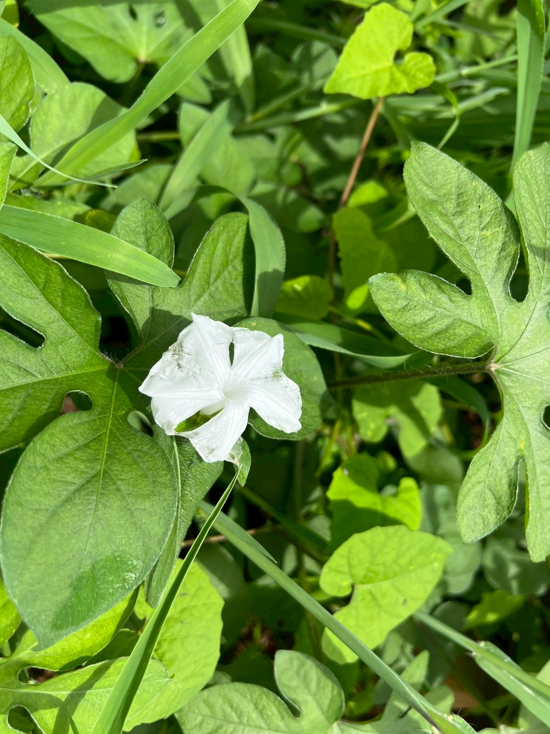 วัชพืชเถาเลื้อยอายุปีเดียว ลำต้นทอดเลื้อยพื้นดิน หรือขึ้นคลุมต้นไม้อื่น ลำต้นเล็กเรียวมีขน มีน้ำยางสีขาว ใบเลี้ยง ใบจริงใบเดี่ยว ใบกว้างแต่ขอบใบเป็นจักเว้าลึกแบ่งแผ่นใบออกเป็น 7-9 แฉก แต่ละแฉกเว้าลึกถึงโคนใบ ปลายใบแต่ละแฉกแหลม ผิวใบมีขนปกคลุมอยู่ทั้งสองด้าน ดอกออกเป็นช่อตามซอกใบ มีประมาณ 2-3 ดอก กลีบดอกส่วนโคนหลอมรวมกันปลายกลีบแผ่บานออกเป็นรูปแตรสีขาว ผลรูปไข่สีน้ำตาล มี 4 เมล็ด เมล็ดรูปลิ่มด้านหนึ่งเป็นรอยตัด อีกด้านโค้งมน ผิวเมล็ดเรียบ สีน้ำตาล (สุรชัย, 2538; จันทร์เพ็ญ, 2551; สุชาดา และคณะ, 2564)