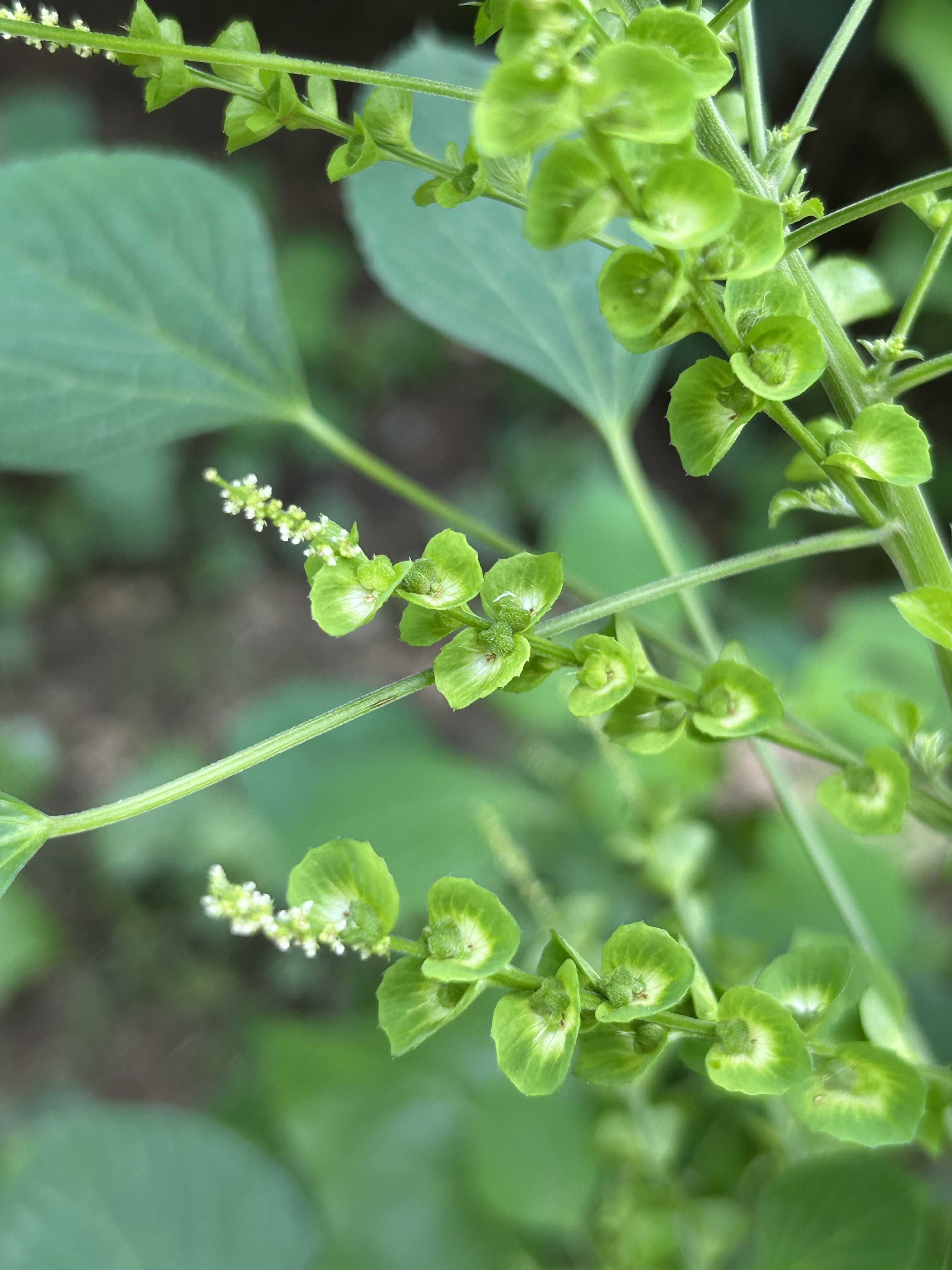 วัชพืชอายุปีเดียว ลำต้นตั้งตรง มีขนปกคลุม เป็นทรงพุ่มรูปไข่ สูง 10-50 เซนติเมตร ใบเลี้ยงเป็นรูปไข่ค่อนข้างกว้างถึงรูปกลม โคนใบมนและปลายใบมนเว้าเล็กน้อย ขอบใบเรียบ ใบจริงใบรูปไข่ ปลายใบป้านหรือมน โคนใบรูปลิ่ม ใบเดี่ยว เรียงเวียนแน่นเป็นกระจุก ช่อดอกคล้ายช่อเชิงลด แยกแขนงเป็นช่อกระจุกสั้นๆ ดอกแยกเพศบนช่อเดียวกัน ใบประดับเรียงเป็นวงคล้ายรูปถ้วย สีเขียว เมล็ด (จันทร์เพ็ญและคณะ, 2553; สุชาดาและคณะ, 2564)