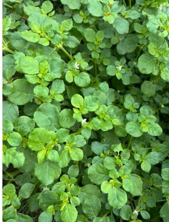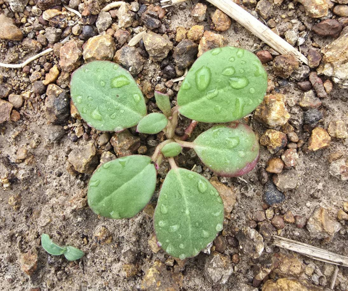 วัชพืชปีเดียว ลำต้นทอดเอนตามผิวดิน ลำต้นอวบน้ำ แตกกิ่งก้านมีขนละเอียด ใบเลี้ยงรูปขอบขนาน ปลายใบและโคนใบรูปลิ่ม ขอบใบเรียบ ใบจริงรูปไข่กลับ โคนใบรูปลิ่มและปลายใบมน ขอบใบเรียบหรือเป็นคลื่น ดอกเดี่ยวสีขาวอมชมพู ออกดอกตามซอกใบ ไม่มีก้านดอก กลีบดอก 5 กลีบ เมล็ดค่อนข้างกลม ด้านหนึ่งของเมล็ดมีส่วนเว้าเล็กน้อย ผิวเมล็ดไม่เรียบเป็นรอยหยัก เมล็ดสีน้ำตาลปนดำ (จันทร์เพ็ญ, 2563; จรัญญา, 2561; สุชาดาและคณะ, 2564)