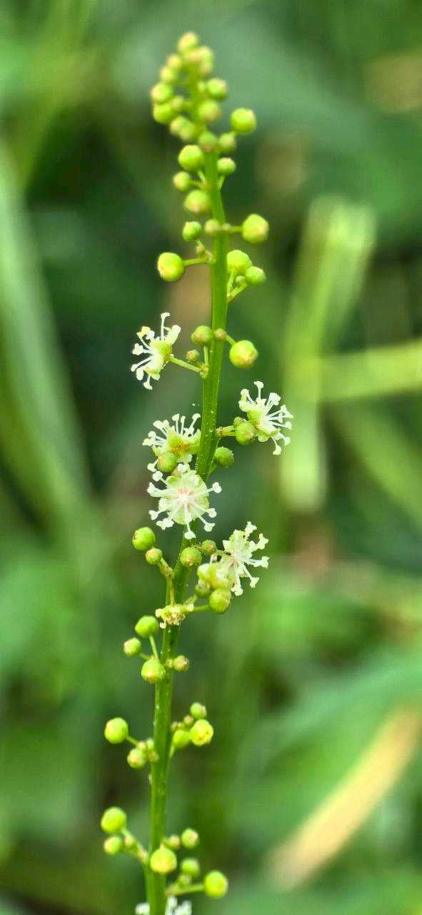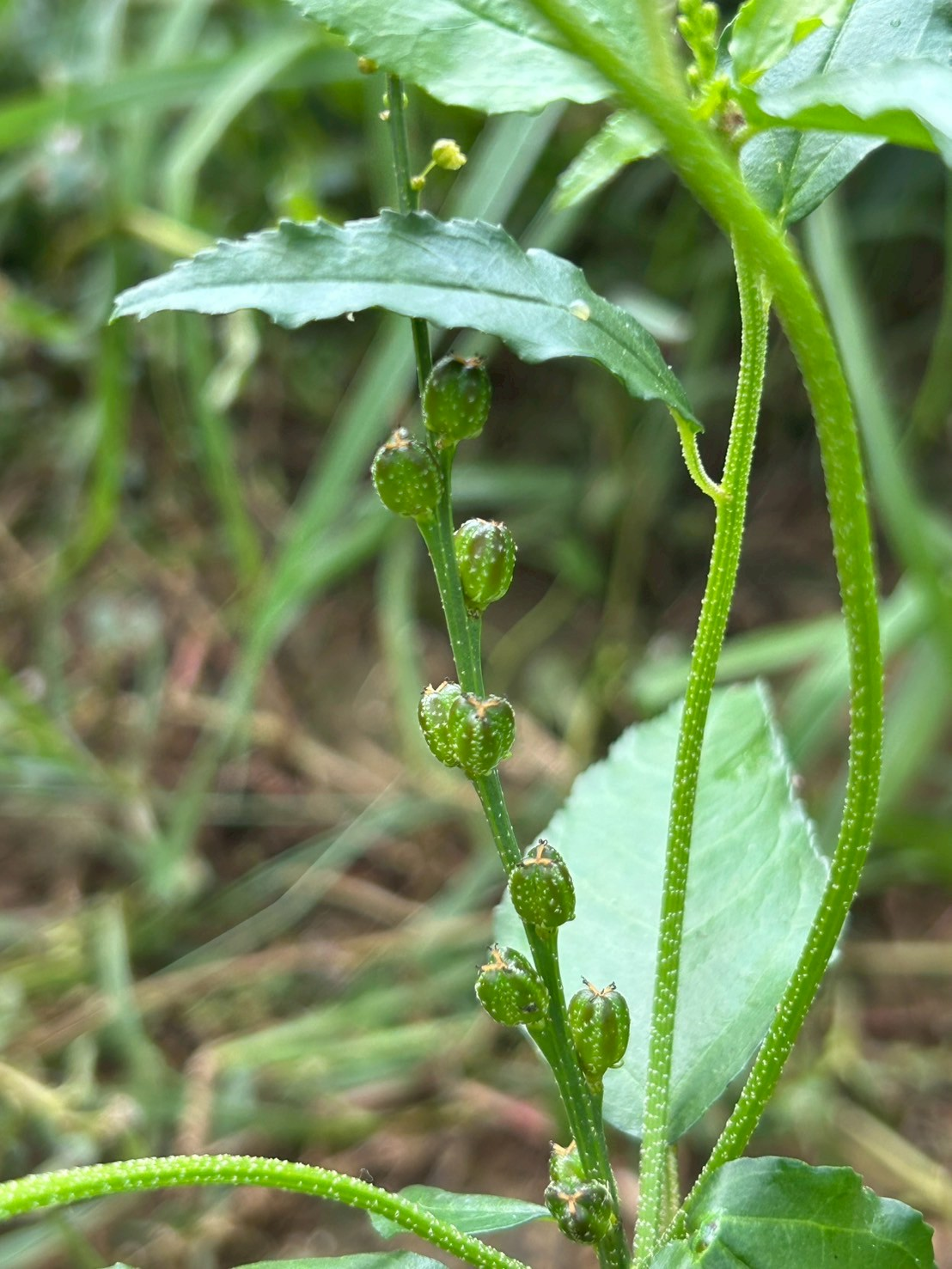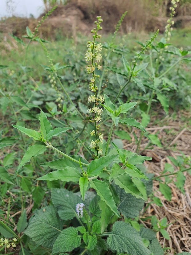 ลำต้น ไม้พุ่มขนาดเล็ก สูง 30-40ซม. แตกกิ่งก้านมาก ลำต้นและใบมีขนรูปดาวปกคลุม ใบ เป็นใบเดี่ยว เรียงเวียน รูปขอบขนาน กว้าง 0.5-1 ซม. ยาว 1-5 ซม. ปลายใบแหลม โคนใบสอบ ขอบใบหยักฟันเลื้อย ดอก ดอกคล้ายแบบช่อกระจะดอกแยกเพศบนช่อเดียวกัน ดอกเพศผู้ด้านบน ดอกเพศเมียอยู่ด้านล่าง กลีบเลี้ยง 5 กลีบ ดอก 5 กลีบ สีขาว เกสรเผศผู้จำนวนมาก ผล แห้งแตก รูปรี เมล็ด 3 เมล็ด สีเทาหรือดำ