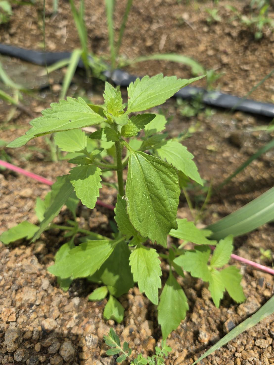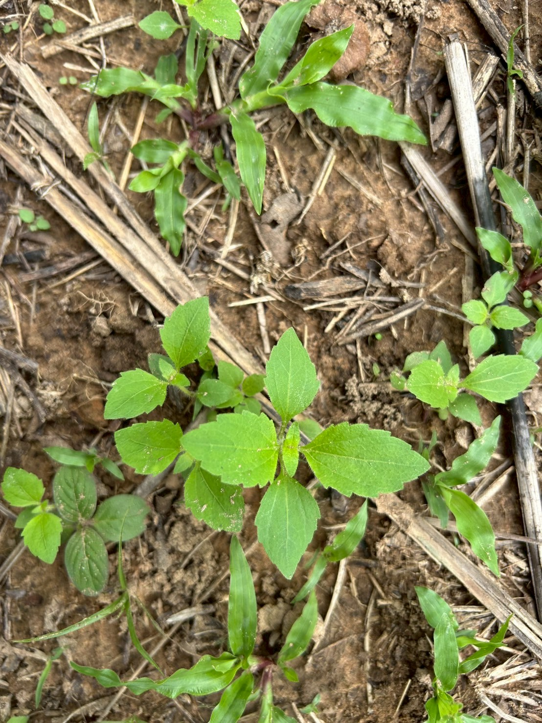 วัชพืชอายุปีเดียว ลำต้น ตั้งตรงมีขนละเอียดปกคลุม สูง 20-70 เซนติเมตร ใบเลี้ยงรูปไข่ค่อนข้างกว้างถึงรูปกลม โคนใบมน ปลายใบมนเว้าเล็กน้อย ขอบใบเรียบ ใบจริงมีขน ใบรูปไข่ โคนใบรูปลิ่ม ปลายใบแหลม ขอบใบจักฟันเลื่อย เห็นเส้นใบชัดเจน ดอกเป็นช่อดอกแบบกระจุกแน่น สีม่วง มีหนึ่งเมล็ดต่อดอกย่อย ประกอบด้วยดอกย่อย 44-48 ดอกย่อยต่อช่อดอก เมล็ดเป็นรูปเรียวยาว (oblong) สีน้ำตาล เมื่อแก่จะมีสีดำ บริเวณปลายของเมล็ดมีกระจุกขนค่อนข้างหนา มีความยาวมากกว่าความยาวของเมล็ด (จันทร์เพ็ญและคณะ, 2553; สุพรรณิกา, 2559; จรัญญา, 2561)