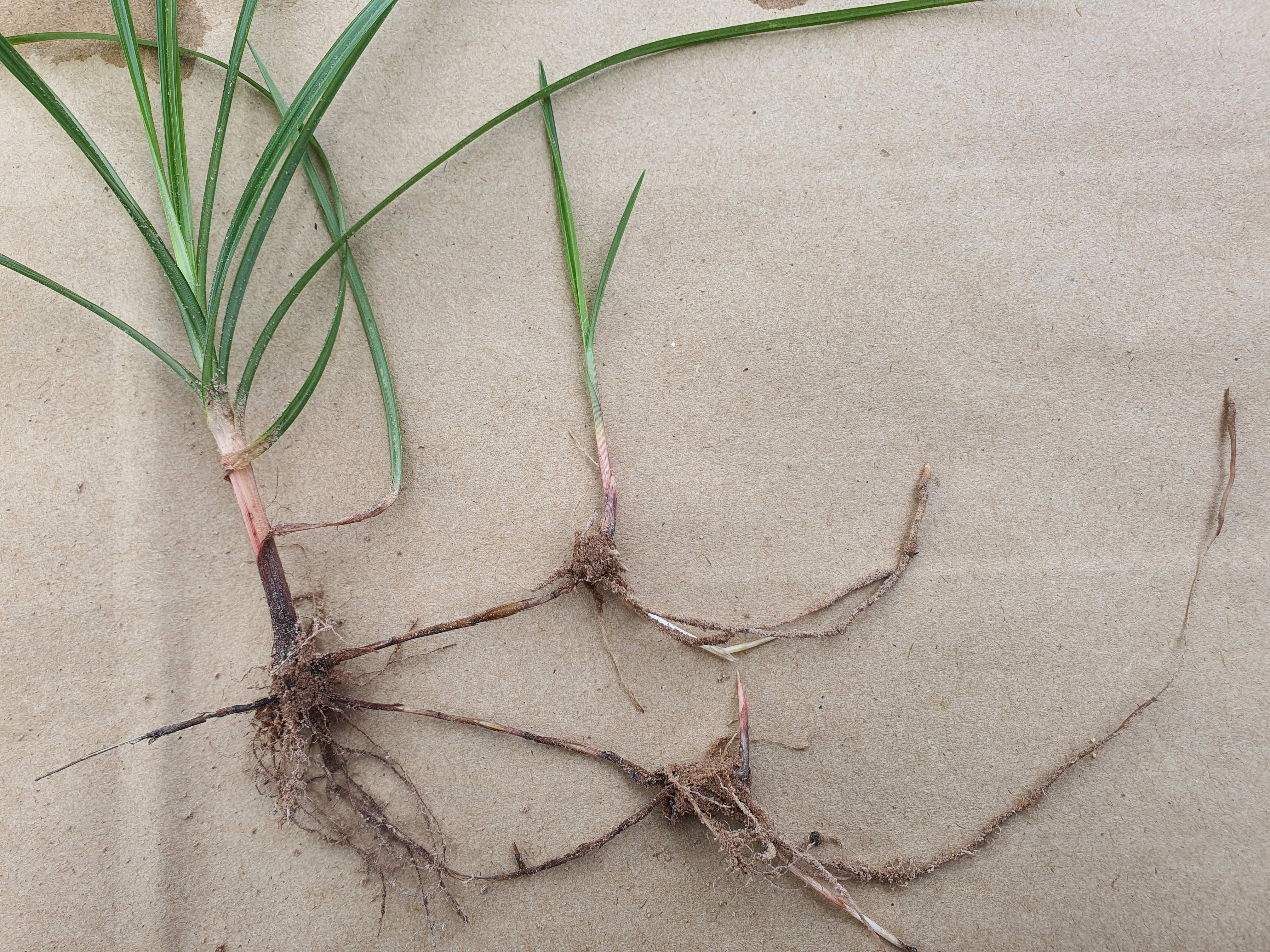 วัชพืชอายุหลายปี ลำต้นเป็นรูปสามเหลี่ยมตั้งตรง ส่วนโคนหนา ลำต้นเป็นกอสูง 30-70 เซนติเมตร ใบมีลักษณะเรียวแคบและยาว ปลายแหลม หรือใบรูปแถบ ส่วนโคนที่ระดับดิน แผ่ออกเป็นกาบหุ้มลำต้น แผ่นใบแคบยาวเป็นร่องตรงกลางคล้ายใบหญ้า ก้านช่อดอกแทงขึ้นมาระหว่างกลาง มีการสร้างหัวใต้ดินเพื่อการขยายพันธุ์ เป็นส่วนที่สร้างขึ้นบริเวณปลายสุดของไหลใต้ดิน สะสมอาหารพวกแป้งขณะที่หัวยังอ่อน มีรูปร่างเกลือบกลมหรือรูปไข่ สีขาว อวบน้ำ ต่อมาจะมีสีเข้มขึ้น เมื่อแก่จะเปลี่ยนเป็นสีน้ำตาลเข้มจนถึงดำ กระจายอยู่ห่างๆ โดยรอบ (พัชรินทร์และคณะ, 2546; จันทร์เพ็ญและคณะ, 2553; สุชาดาและคณะ, 2564)