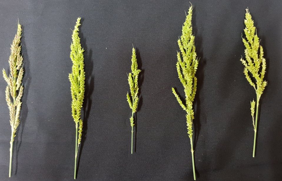 ลำต้น ต้นตั้งตรง อาจสูงถึง 1.5 เมตร แตกรากและแขนงบริเวณโคนต้น ลำต้นกลมและเรียบ แต่ก็พบมีขนอยู่บ้าง ไม่มีขน ที่รอยต่อระหว่างกาบใบแลพแผ่นใบ ใบ เป็นใบเดี่ยวออกสลับข้างกัน โคนใบแผ่เป็นกาบหุ้มลำต้นไว้ แผ่นใบเรียวยาว ฐานกว้างปลายแหลม บนขนจำนวนไม่มากที่ฐานแผ่นใบ ท้องใบหยาบหลังใบเรียบ สีเขียวยาว 5-50 ซม. กว้าง 5-20 มม. ขอบใบเป็นหนามเล็ก ๆ ดอก ดอกเป็นช่อแบบช่อแยกแขนง (panicle) ตั้งตรงขึ้นไปหรือโน้มยอดลงมา ยาว 10-20 ซม. ออกที่ส่วนยอดของลำต้น ประกอบด้วยช่อดอกแบบกระจะ (raceme) 12-30 ช่อ แต่ละช่อ ยาว 2-4ซม. แกนกลางของช่อดอกเป็นเหลี่ยมที่สันจะมีโคนสั้น ๆ แต่ละช่อประกอบด้วยช่อดอกย่อย ยาว 3-4 มม. จำนวนมากแน่นอยู่ ช่อดอกย่อยมีกาบ 2 อัน กาบล่างยาวไม่ถึงครึ่งหนึ่งของตวามยาวช่อดอกย่อย กาบบนยาวกว่า มีขนปกคลุมอยู่ตามขอบและลายเส้นบนกาบ ช่อดอกย่อยแต่ละช่อมีดอกย่อยอยู่ 2 ดอก ดอกแรกเป็นหมัน มีกาบนอกยาว 3-3.5 มม. ที่ปกคลุมด้วยขน ตามแบบฉบับแล้วมีปลายยื่นยาวออกไปเป็นหนวด แต่ก็พบทั่วไปหนวดนี้จะยาว 5-10 มม. กาบในยาว 2.5-3 มม. บางใสไม่มีขนดอกที่สองซึ่งเป็นดอกสมบูรณ์เพศมีกาบนอกยาว 0.5 มม. ค่อนข้างแข็งผิวเรียบเป็นมัน กาบนาว 2.5มม. บางกว่ากาบนอก ส่วนของกลีบดอกที่ลดรูปไป มี 2 อัน ขนาดเล็ก เกสรตัวผู้ 3 อัน อับละอองเรณูสีส้ม เกสรตัวเมียมีรังไข่ขนาดเล็ก ท่อรังไข่ 2 อัน ที่ปลายมีขนสีม่วงปกคลุม ผล แบบผลธัญพืช (Caryopsis) รูปไข่สีน้ำตาล ยาว 2.5-3มม. ด้านหลังเรียบ ด้านหน้ามีรอยเว้าเข้าไป ขอบรองรอยเว้านู้นเป็นสันขึ้นมา ลักษณะของเมล็ดนี้แตกต่างกันไปมาก