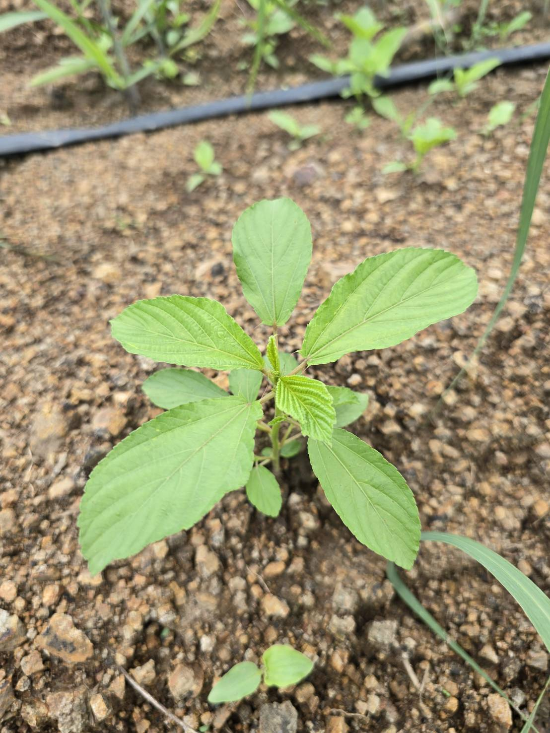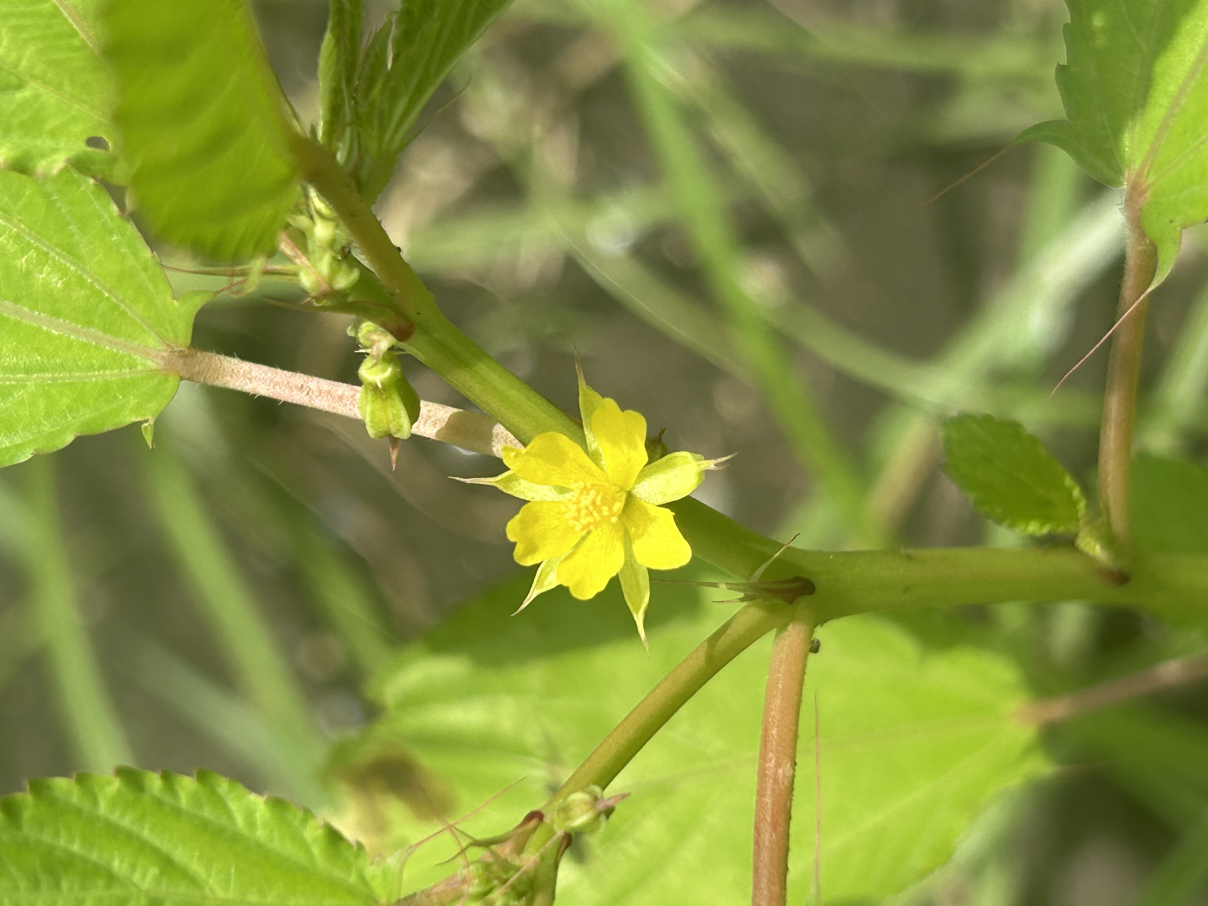 วัชพืชปีเดียว ลำต้นตั้งสูงประมาณ 100 เซนติเมตร มีสีแดงเข้ม เกลี้ยงหรือมีขน ใบเลี้ยง ใบจริงใบเดี่ยวเรียงสลับ รูปไข่ ปลายแหลม โคนมน ขอบจักฟันเลื่อย จักสุดท้ายตรงโคนใบมีระยางค์ ข้างละ 1 เส้น เส้นแขนงใบออกจากโคนใบ 1 คู่ ยาวเกือบถึงปลายใบ ด้านล่างมีขนและเห็นเส้นแขนงใบชัดเจน ก้านใบยาว มีขนและเป็นร่องทางด้านบน หูใบรูปสามเหลี่ยมเรียวแหลม ช่อดอกแบบช่อเชิงลด มีเพียง 2-3 ดอก ออกตรงข้ามกับใบ ดอกสีเหลือง กลีบเลี้ยง 5 กลีบ รูปแถบ กลีบดอก 5 กลีบ รูปช้อน ผลรูปทรงกระบอก ปลายผลแตกออกเป็น 3 แฉก แต่ละแฉกปลายมี 2 จัก เมล็ด