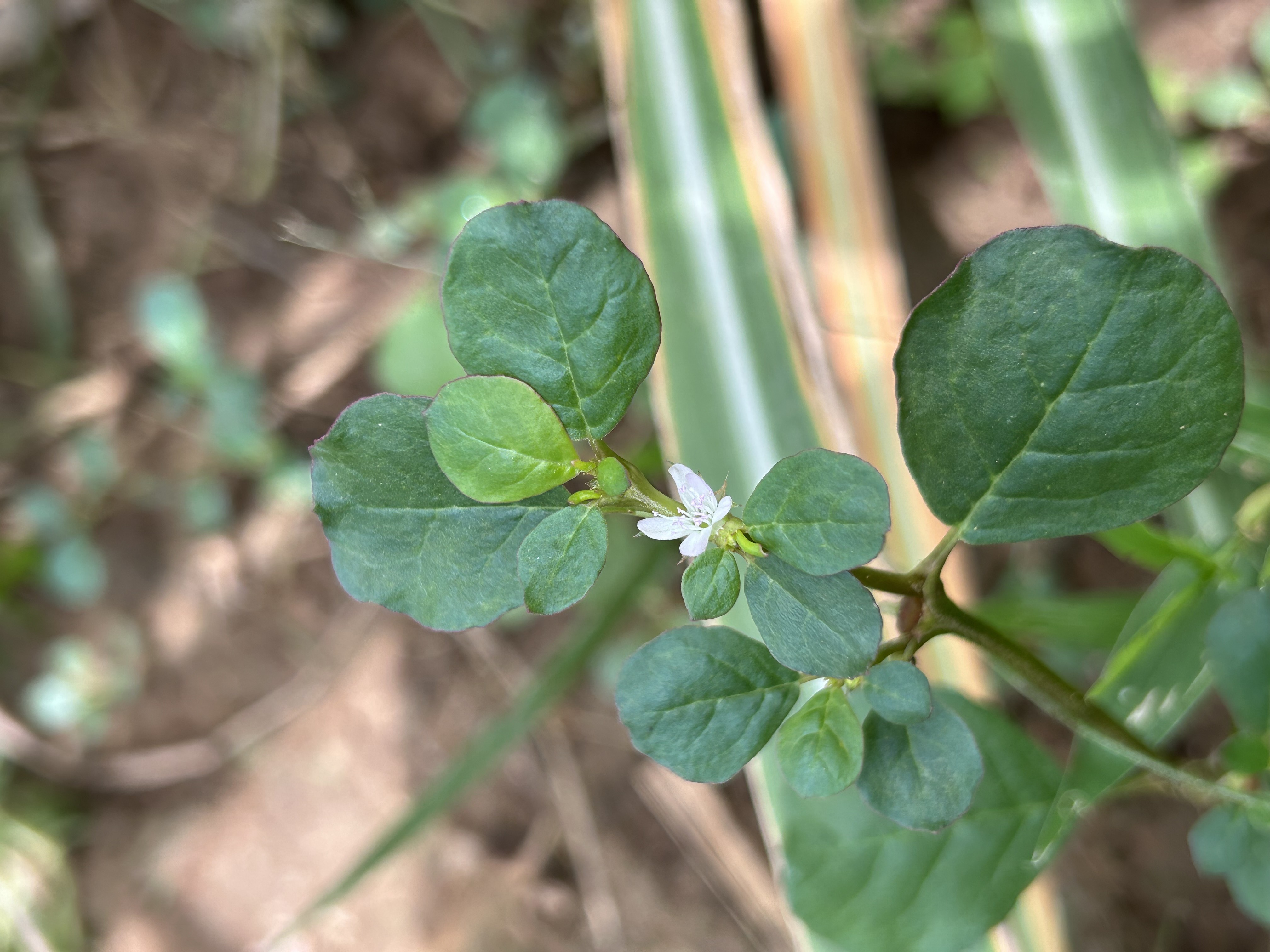วัชพืชปีเดียว ลำต้นทอดเอนตามผิวดิน ลำต้นอวบน้ำ แตกกิ่งก้านมีขนละเอียด ใบเลี้ยงรูปขอบขนาน ปลายใบและโคนใบรูปลิ่ม ขอบใบเรียบ ใบจริงรูปไข่กลับ โคนใบรูปลิ่มและปลายใบมน ขอบใบเรียบหรือเป็นคลื่น ดอกเดี่ยวสีขาวอมชมพู ออกดอกตามซอกใบ ไม่มีก้านดอก กลีบดอก 5 กลีบ เมล็ดค่อนข้างกลม ด้านหนึ่งของเมล็ดมีส่วนเว้าเล็กน้อย ผิวเมล็ดไม่เรียบเป็นรอยหยัก เมล็ดสีน้ำตาลปนดำ (จันทร์เพ็ญ, 2563; จรัญญา, 2561; สุชาดาและคณะ, 2564)