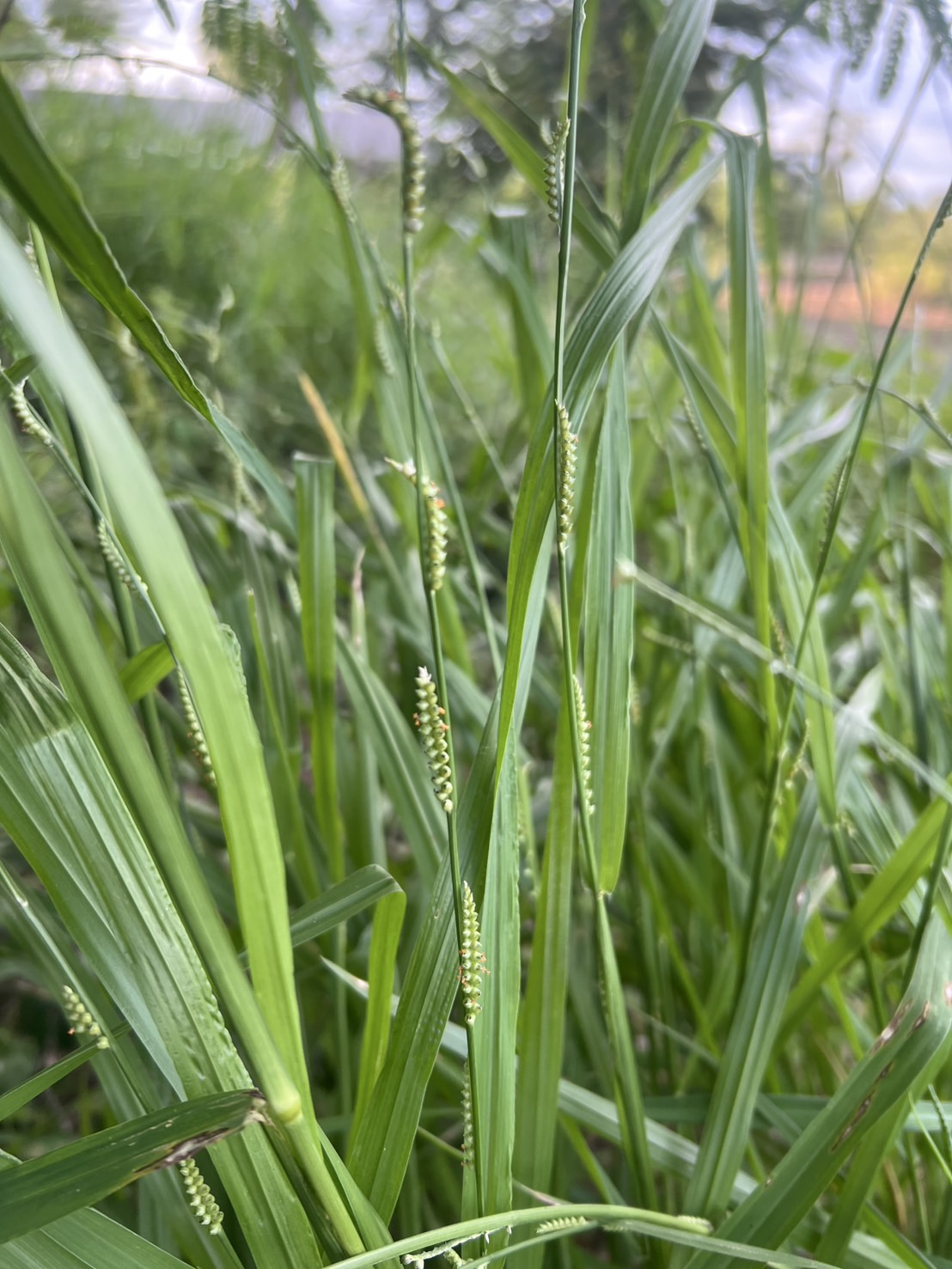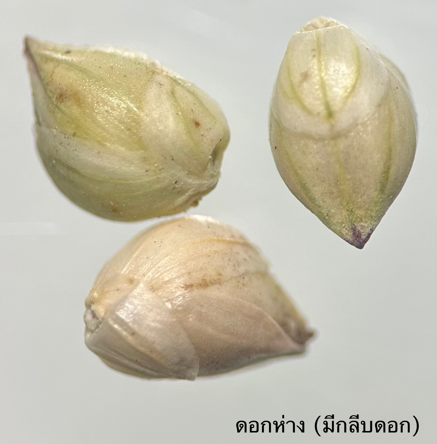 หญ้าอายุหลายปี สูง 30-50 ซม. ลำต้นแตกเป็นกอ ใบ รูปขอบขนานแกมใบหอก กว้าง 0.4-1 ซม. ยาว 30-50 ซม. ปลายใบแหลม ขอบใบสีม่วงหยักซี่ฟันถี่ ดอก แบบช่อกระจะ ยาว 30-50 ซม. ช่อแขนงย่อยเรียงสลับบนแกนกลางช่อดอกย่อยเรียงสลับกันบนแกนกลางด้านเดียว ดอกย่อยไม่มีก้าน ดอกย่อยล่าง มีกาบล่างปลาย เป็นติ่งแหลม ดอกย่อยบนมีกบล่างและกาบบน เนื้อหนาแข็ง ด้านหลังมีรอยขรุขระตามขวาง เกสรเพศผู้ 3 อัน สีเหลือง รังไข่รูปรี ปลายแยก เป็น 2 แฉก