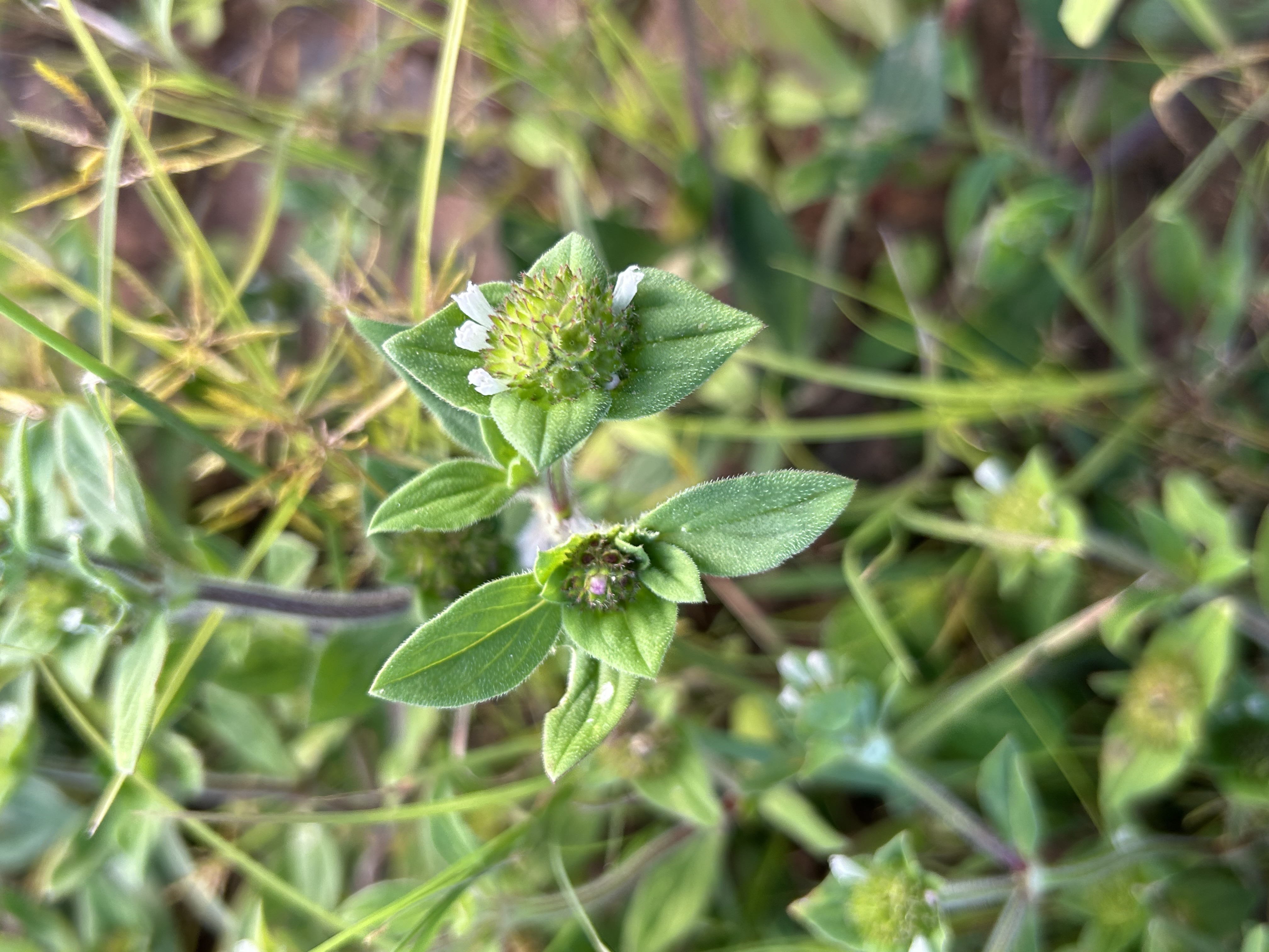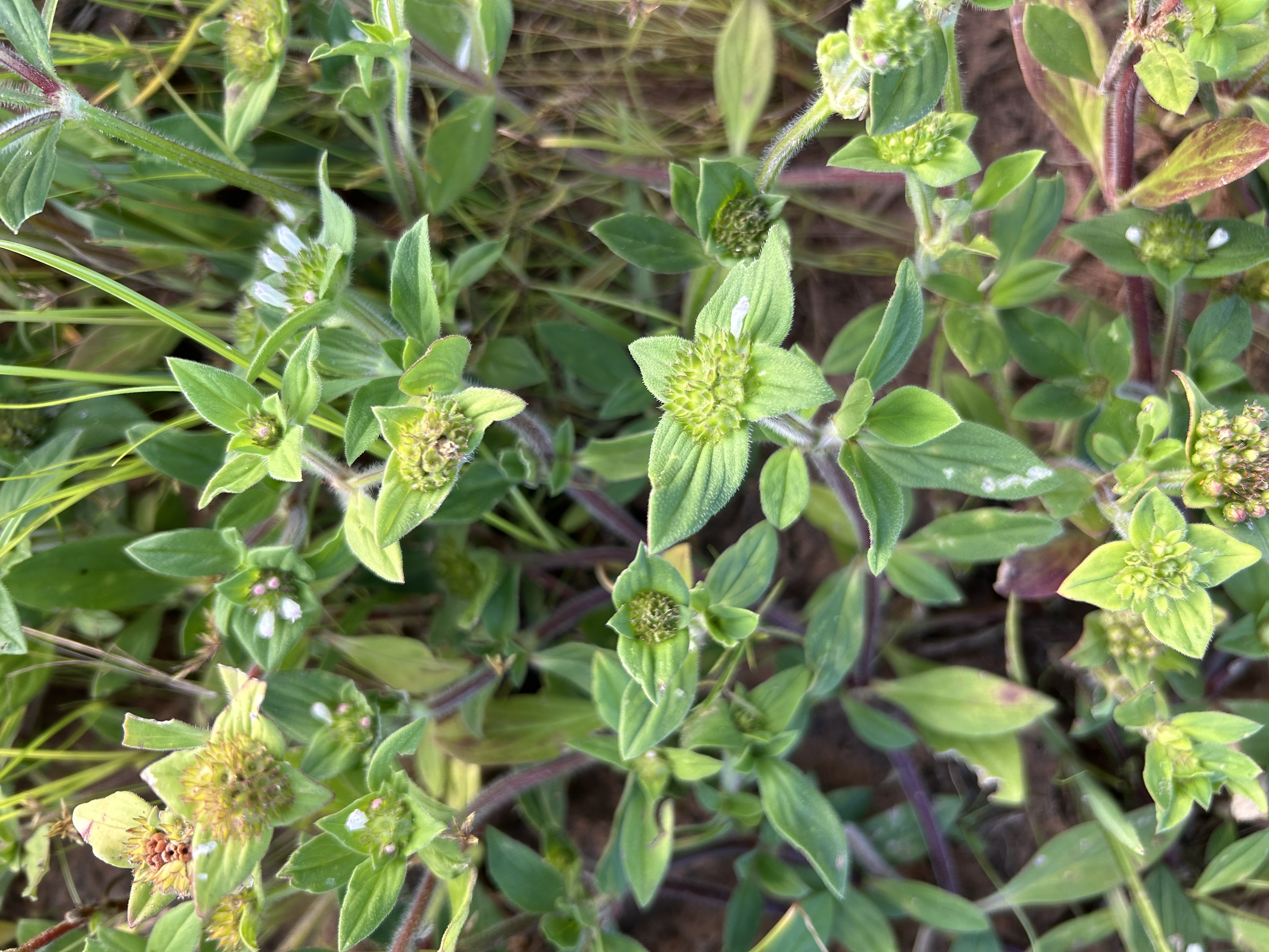 วัชพืชอายุฤดูเดียว ลำต้นเลื้อยทอดนอน แผ่ไปตามพื้นดิน ลำต้นยาวได้ถึง 40 เซนติเมตร มีขนปกคลุมหนาแน่น ต้นอ่อนใบเลี้ยงรูปไข่หรือรูปรี โคนใบมนและปลายใบตัด ขอบใบเรียบ ใบจริงรูปรี โคนใบมนและปลายใบแหลม ขอบใบเรียบ เกิดเป็นคู่ตรงข้ามกันตามข้อลำต้น มีขนปกคลุม มักมีขนสั้นปกคลุมด้านบนและบนขอบและเส้นใบด้านล่าง ดอกมีขนาดเล็กสีขาว ออกเป็นกระจุกอัดแน่นรองรับด้วยใบประดับ 4 ใบ เมล็ดรูปกระสวยปลายทั้งสองด้านสอบเข้าหากันเล็กน้อย และโค้งมน ด้านหนึ่งมีร่องตรงกลางตามยาวของเมล็ด เมล็ดสีน้ำตาลเข้ม (จันทร์เพ็ญ, 2551; จันทร์เพ็ญและคณะ, 2553; จรรยาและคณะ 2559; จรัญญา, 2561)