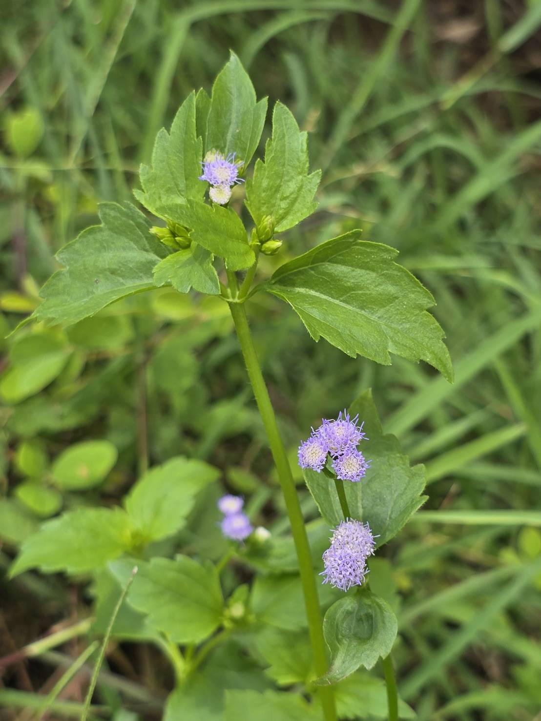 วัชพืชอายุปีเดียว ลำต้น ตั้งตรงมีขนละเอียดปกคลุม สูง 20-70 เซนติเมตร ใบเลี้ยงรูปไข่ค่อนข้างกว้างถึงรูปกลม โคนใบมน ปลายใบมนเว้าเล็กน้อย ขอบใบเรียบ ใบจริงมีขน ใบรูปไข่ โคนใบรูปลิ่ม ปลายใบแหลม ขอบใบจักฟันเลื่อย เห็นเส้นใบชัดเจน ดอกเป็นช่อดอกแบบกระจุกแน่น สีม่วง มีหนึ่งเมล็ดต่อดอกย่อย ประกอบด้วยดอกย่อย 44-48 ดอกย่อยต่อช่อดอก เมล็ดเป็นรูปเรียวยาว (oblong) สีน้ำตาล เมื่อแก่จะมีสีดำ บริเวณปลายของเมล็ดมีกระจุกขนค่อนข้างหนา มีความยาวมากกว่าความยาวของเมล็ด (จันทร์เพ็ญและคณะ, 2553; สุพรรณิกา, 2559; จรัญญา, 2561)